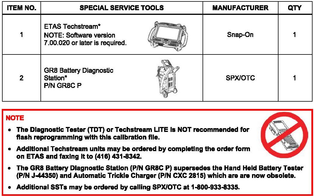^ The GR8 Battery Diagnostic Station MUST be used in Power Supply Mode to maintain battery voltage at 13.5 volts while flash reprogramming the vehicle.