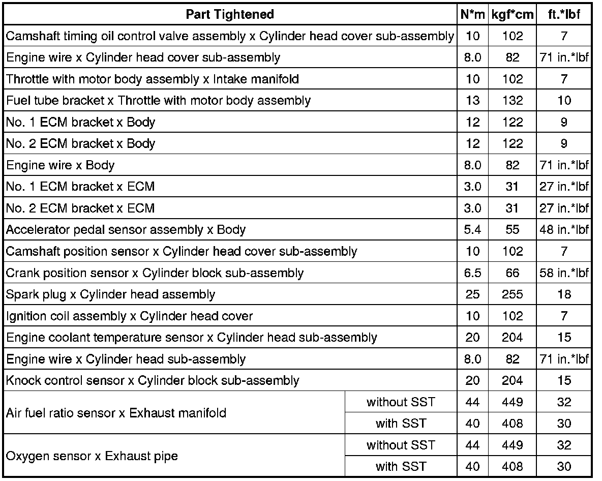 SPECIFICATIONS: 2AR-FE ENGINE CONTROL: TORQUE SPECIFICATIONS