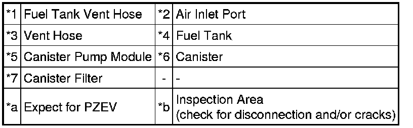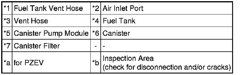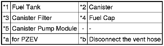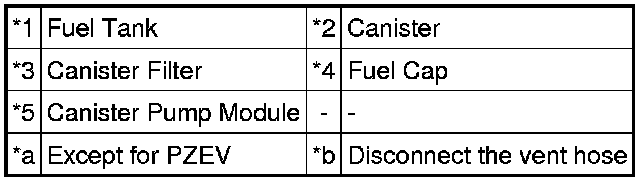 * When replacing the canister, check the canister pump module interior and related pipes for water, fuel and other liquids. If liquids are present, check for disconnections and/or cracks in the following: 1) the pipe from the air inlet port to the canister pump module; 2) the canister filter; and 3) the fuel tank vent hose.