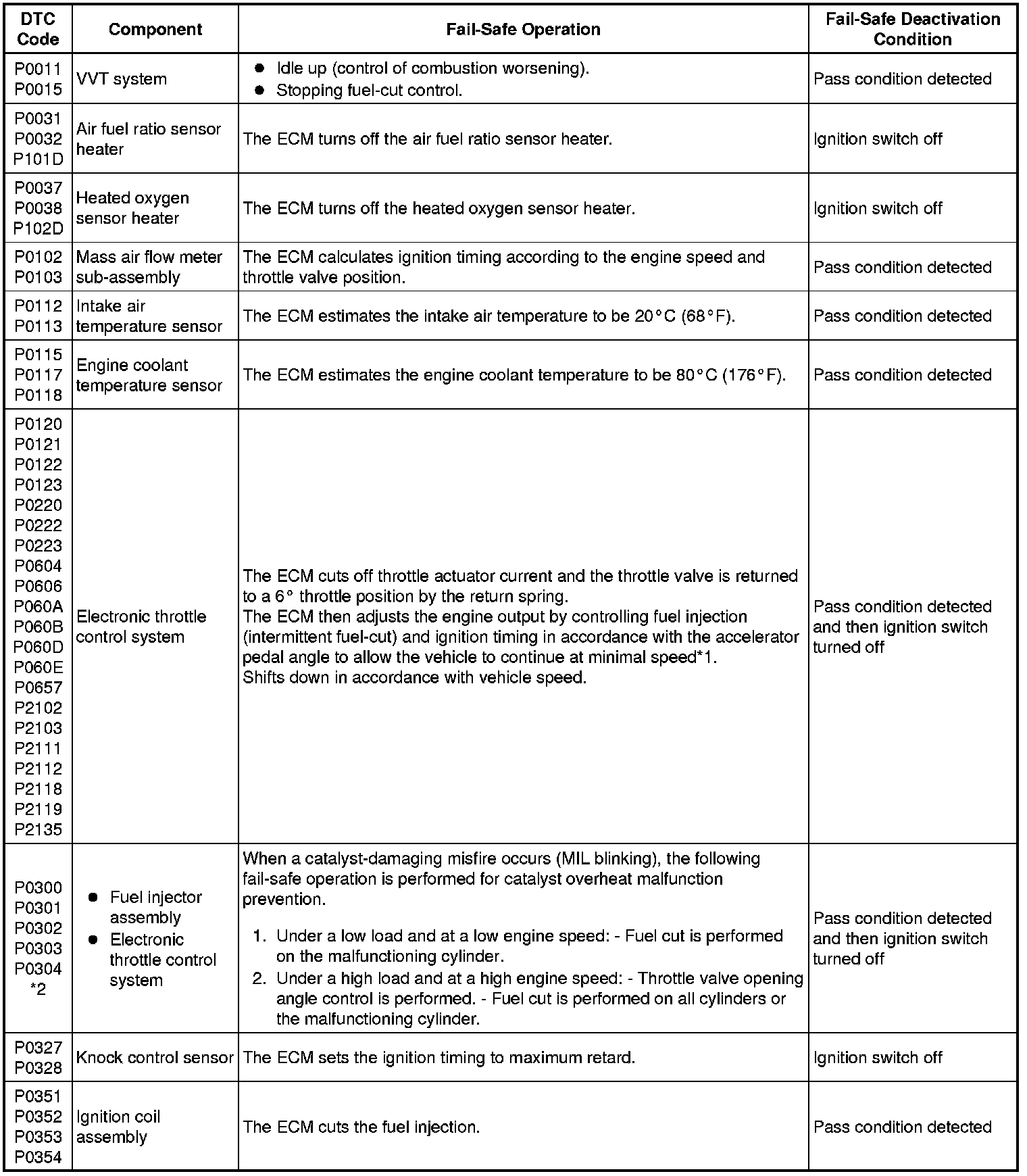 * *2: Misfire-related fail-safe operations occur when catalyst overheat malfunctions occur.