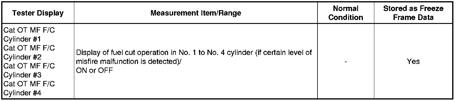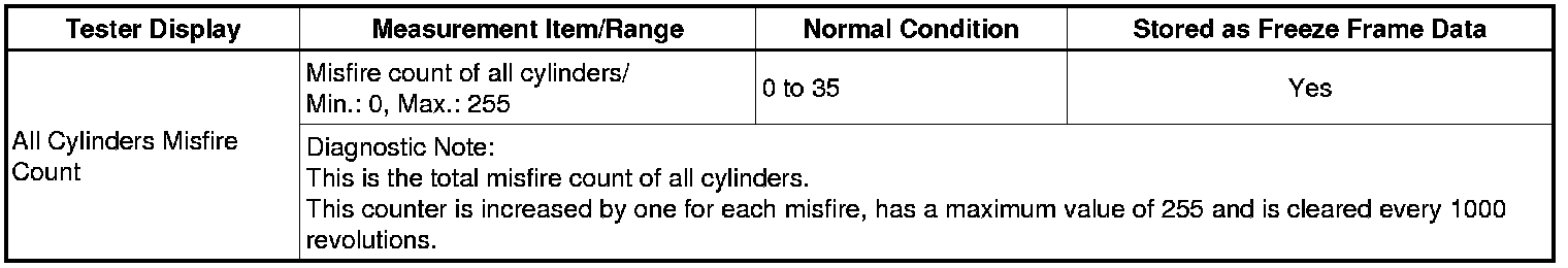 Cylinder #1 Misfire Count to Cylinder #4 Misfire Count