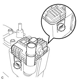 (a) Engage the 2 claws to install a new charcoal canister leak detection pump sub-assembly to the canister.