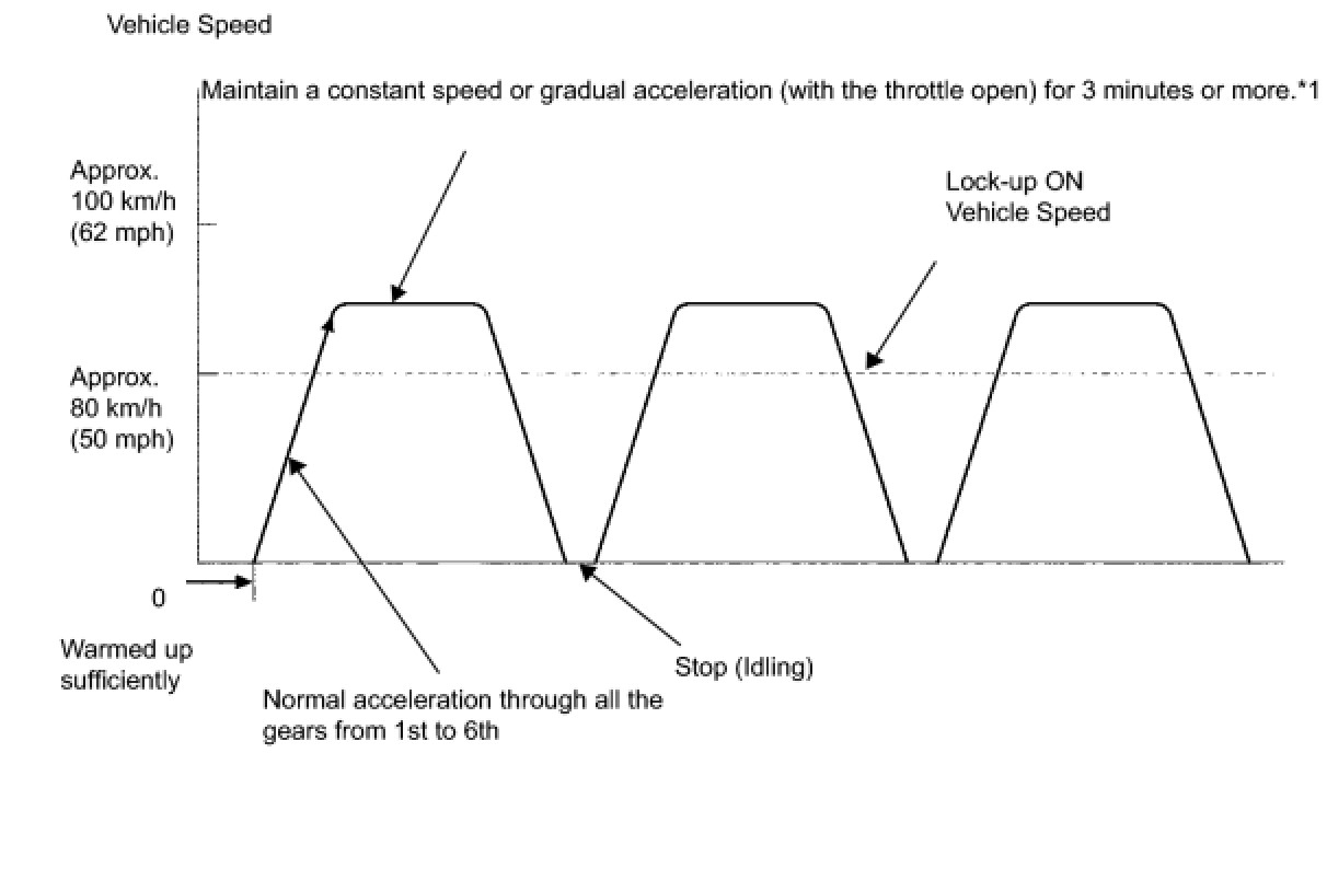 *1: Drive the vehicle at a speed in top gear that will cause lock-up to engage. The vehicle can be driven at a speed lower than that in the above diagram under the lock-up condition.
