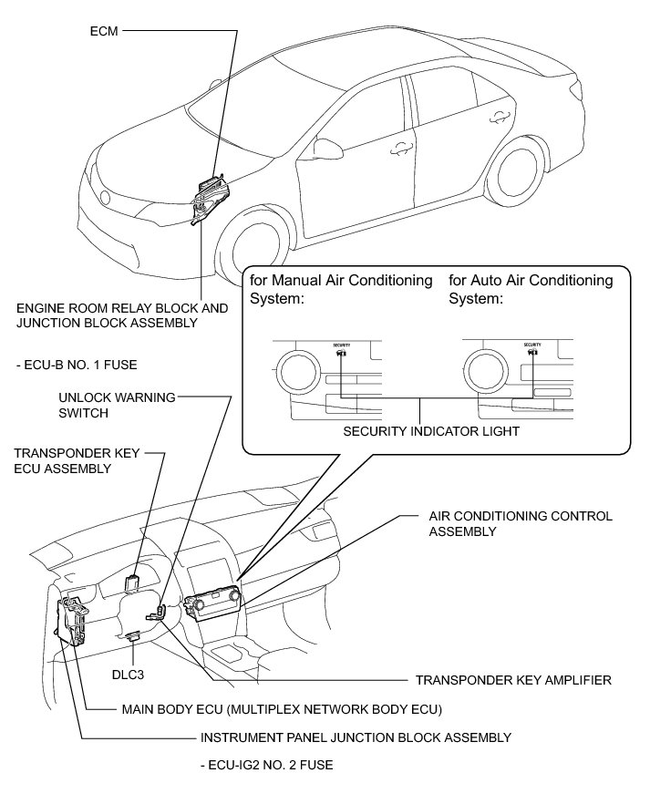THEFT DETERRENT / KEYLESS ENTRY: ENGINE IMMOBILISER SYSTEM (w/o Smart Key System): PARTS LOCATION