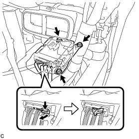(d) Disconnect the connectors from the airbag sensor assembly as shown in the illustration.