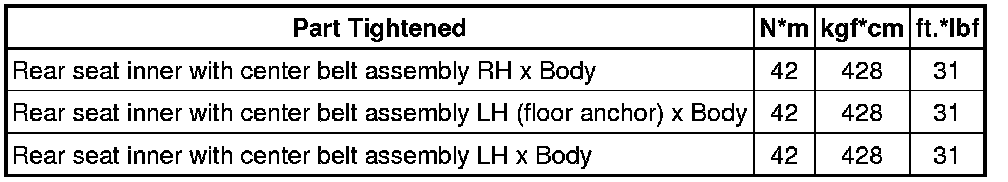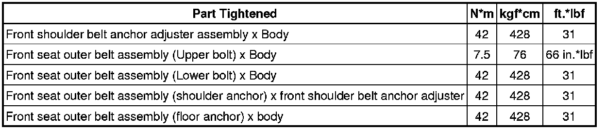 SPECIFICATIONS: SEAT BELT: TORQUE SPECIFICATIONS
