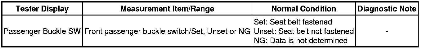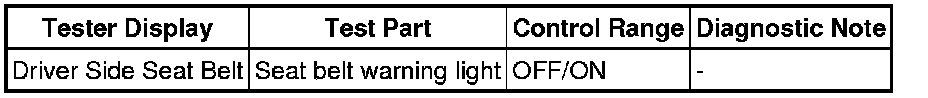 SEAT BELT: SEAT BELT WARNING SYSTEM: DATA LIST / ACTIVE TEST