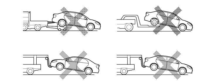 (d) The towing methods shown below are dangerous and can damage the vehicle, so do not use them.
