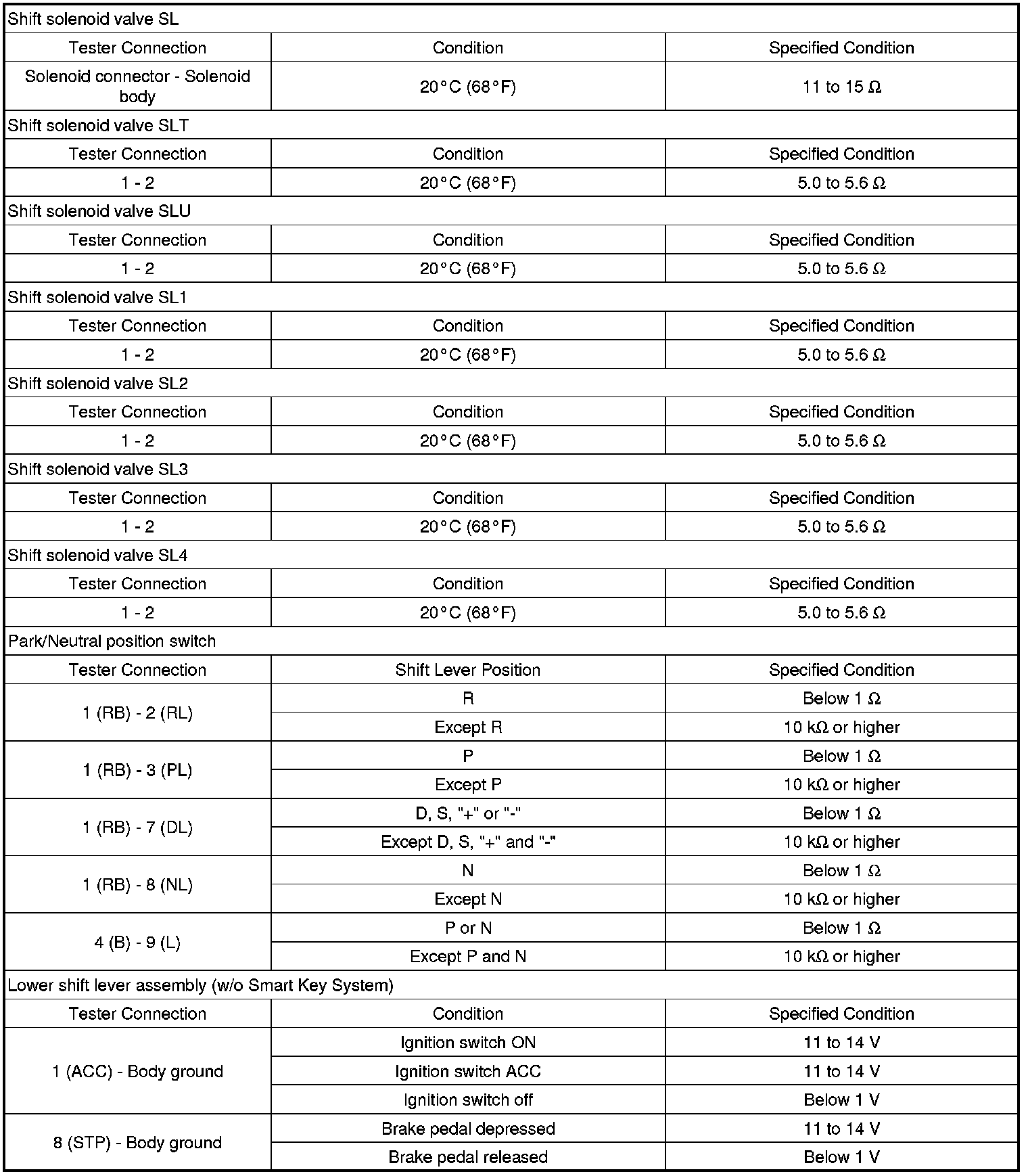 SPECIFICATIONS: U760E AUTOMATIC TRANSMISSION / TRANSAXLE: SERVICE DATA