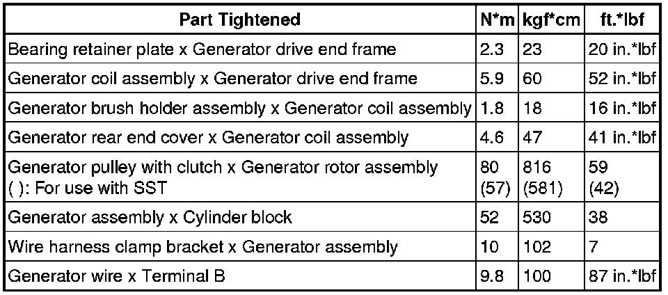 SPECIFICATIONS: 2AR-FE BATTERY / CHARGING: TORQUE SPECIFICATIONS