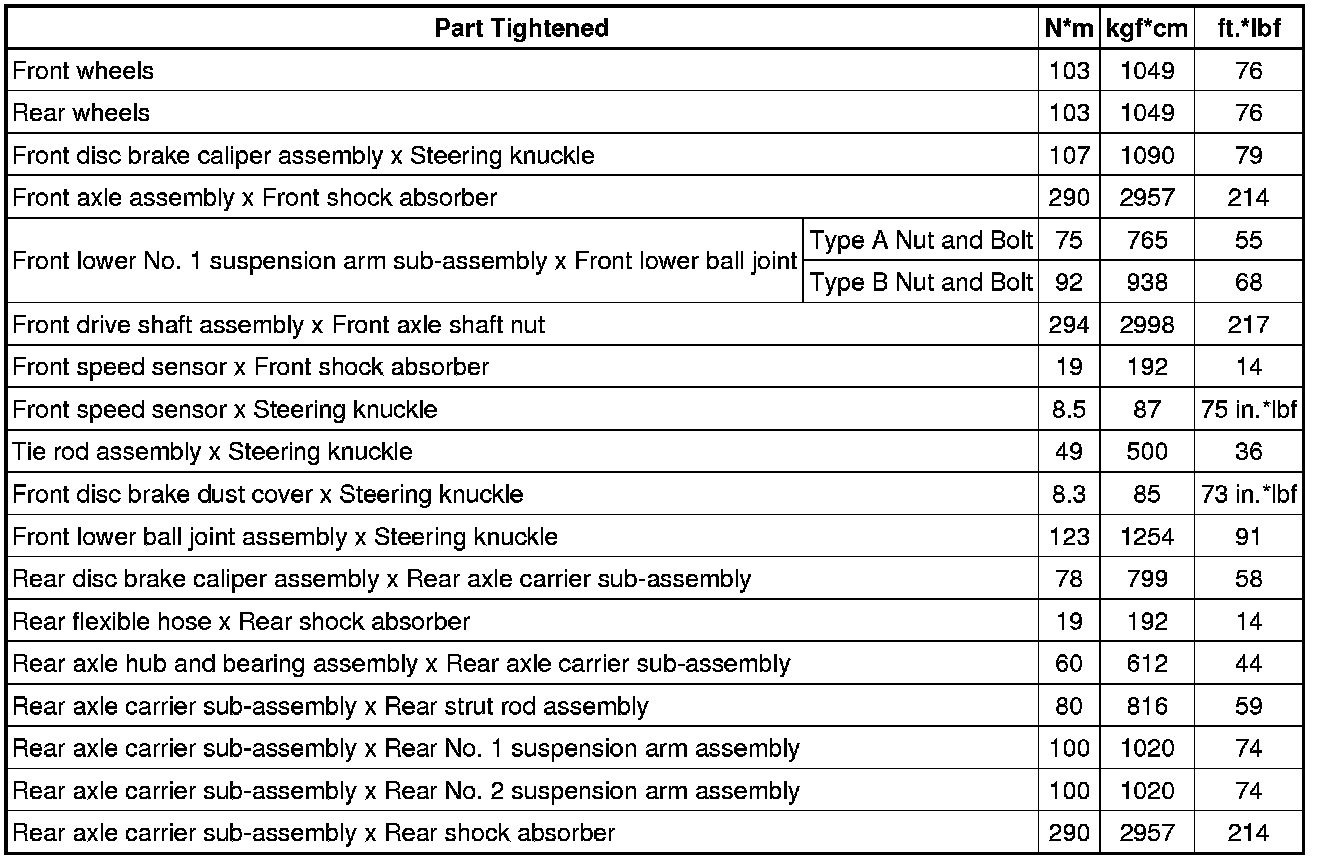 SPECIFICATIONS: AXLE AND DIFFERENTIAL: TORQUE SPECIFICATIONS
