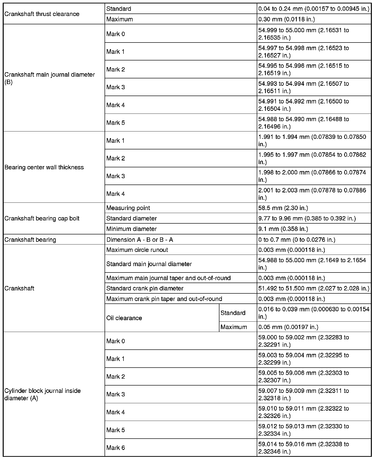 MAIN BEARING CLEARANCE STANDARD AND LIMIT