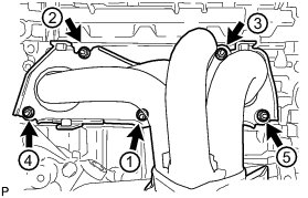 Tighten the 5 nuts in the sequence shown in the illustration (for PZEV).