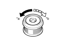 (a) Hold the generator rotor using SST, and turn the generator pulley with clutch clockwise to check that the outer ring locks.