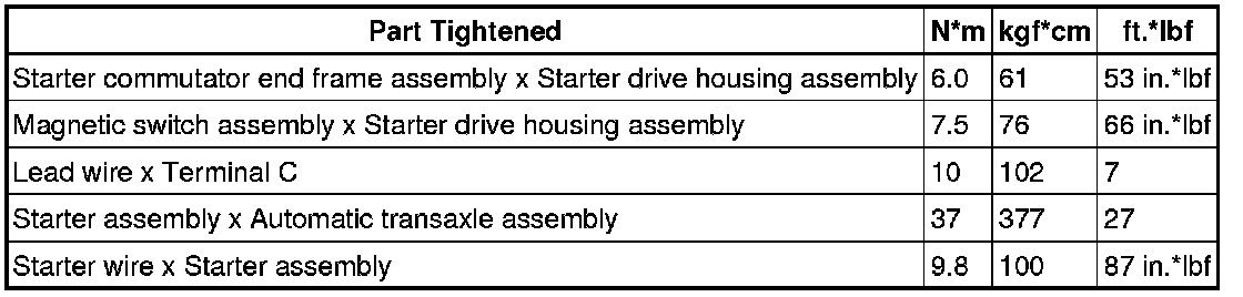 SPECIFICATIONS: 2AR-FE STARTING: TORQUE SPECIFICATIONS