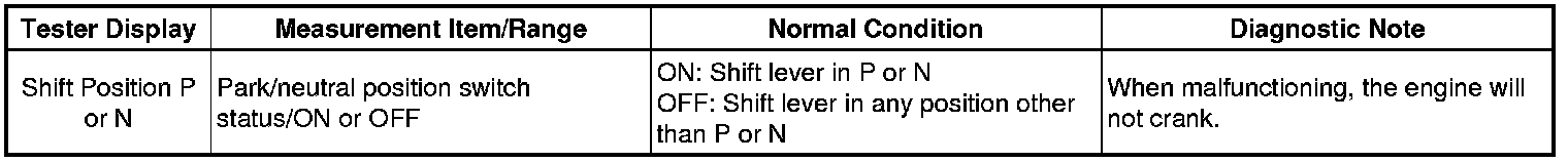 NG -- READ VALUE USING TECHSTREAM (NEUTRAL SW/ CLUTCH SW, SHIFT POSITION P OR N)