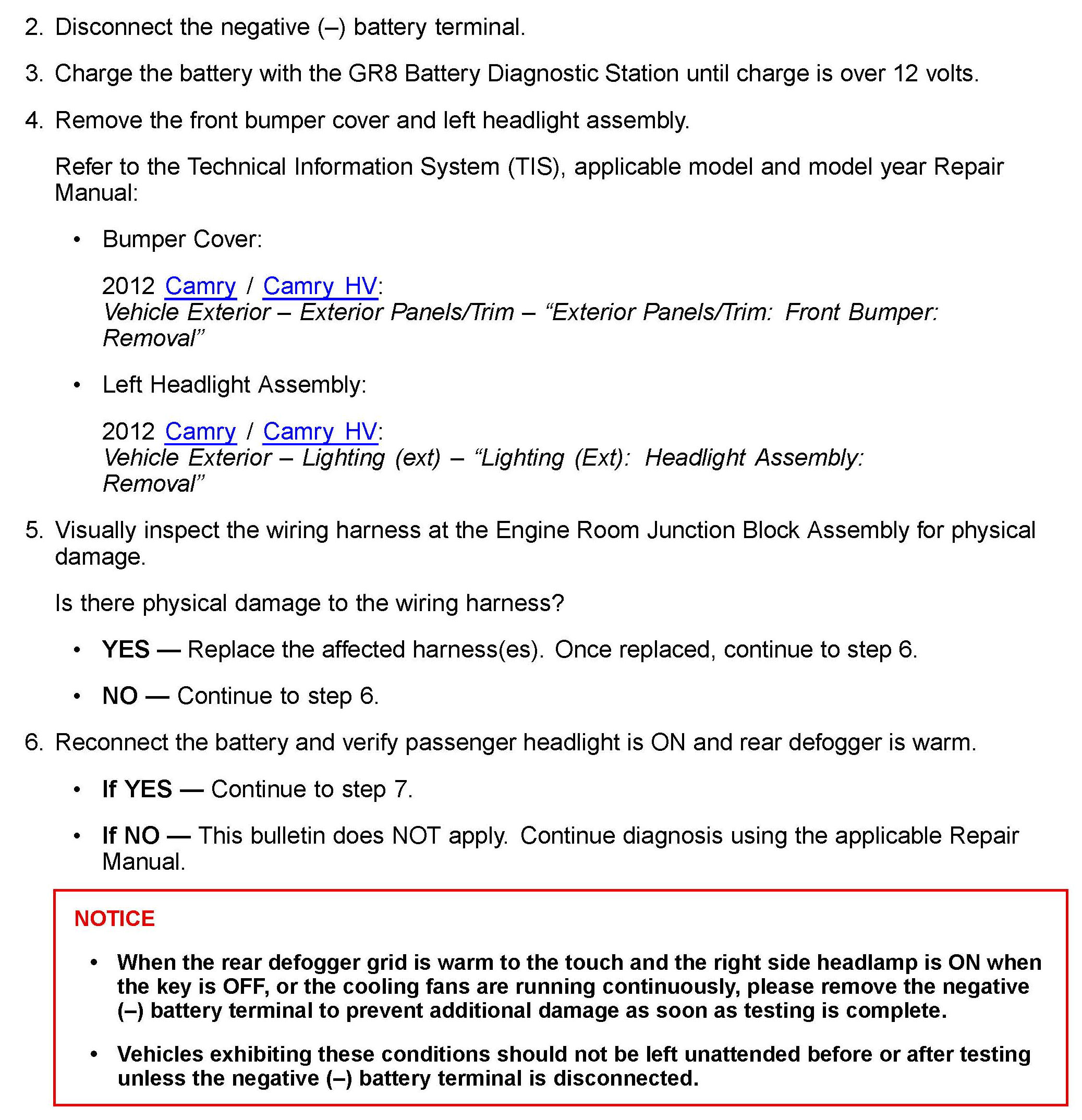 Some 2012 model year Camry and Camry HV vehicles may exhibit a condition where the passenger headlight and rear defogger operate continuously.