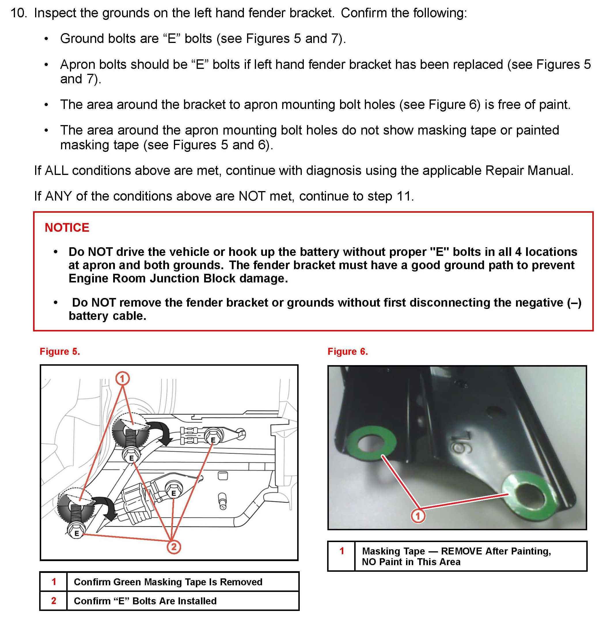 This condition may be caused by a poor ground for the Engine Room Junction Block Assembly on the left fender side panel bracket after a collision repair. This may occur during body shop repairs orother repairs where the left side fender bracket grounds were left loose, not properly attached using correct bolts, or improperly painted, and the vehicle's battery was connected.