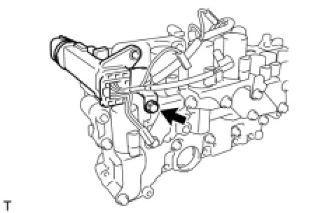 (d) Remove the bolt and lock plate and disconnect the temperature sensor from the transmission valve body assembly.