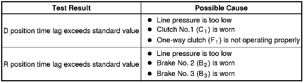(2) Move the shift lever to D and measure the time until the shock is felt.