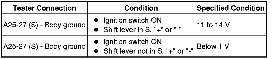 When the shift lever is in S and it is moved toward "-" or "+", it is possible to select different shift ranges (1st through 6th ranges).