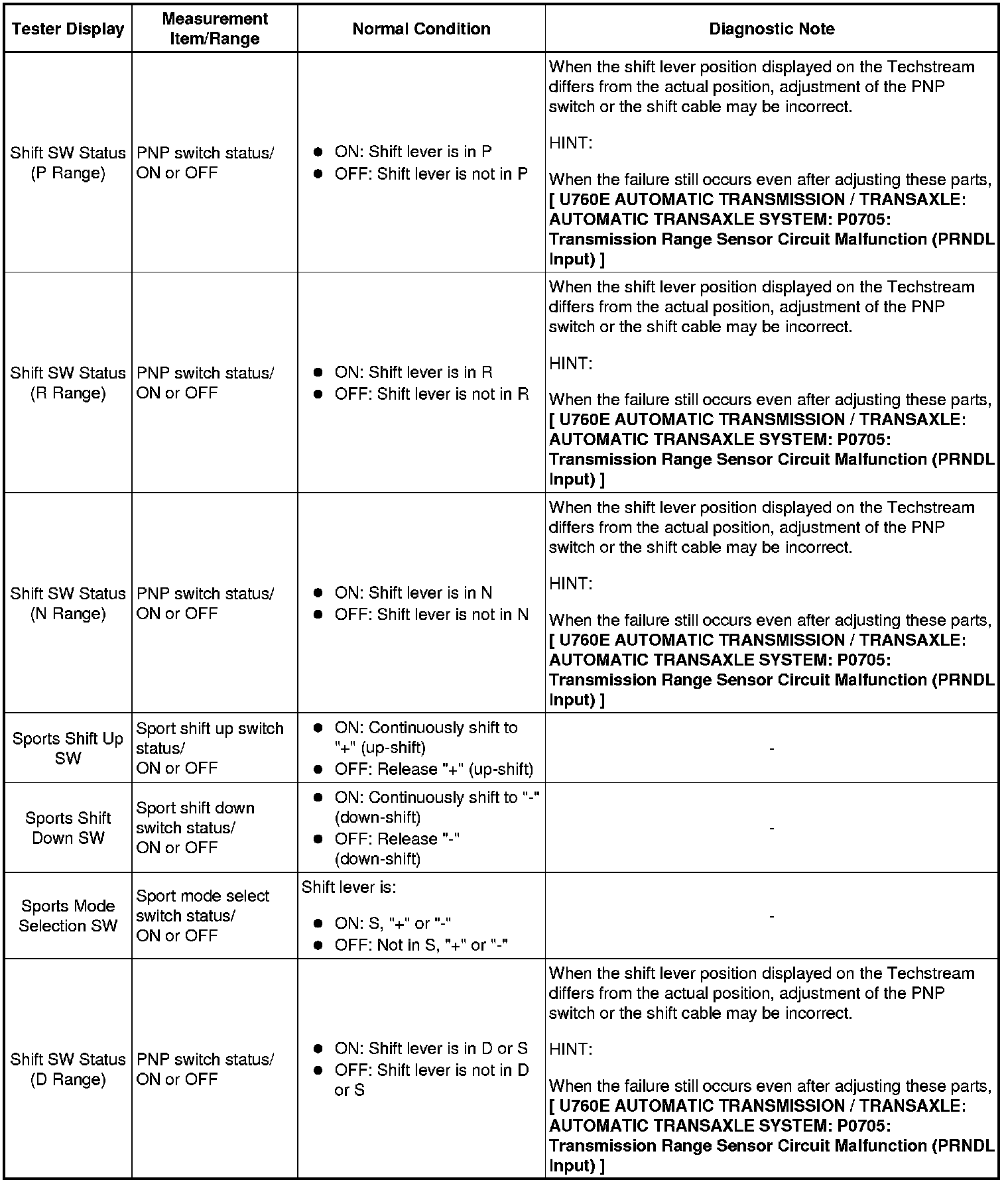 U760E AUTOMATIC TRANSMISSION / TRANSAXLE: AUTOMATIC TRANSAXLE SYSTEM: DATA LIST / ACTIVE TEST