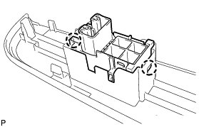 (a) Disengage the 2 claws and remove the rear power window regulator switch assembly from the rear upper door armrest base panel.