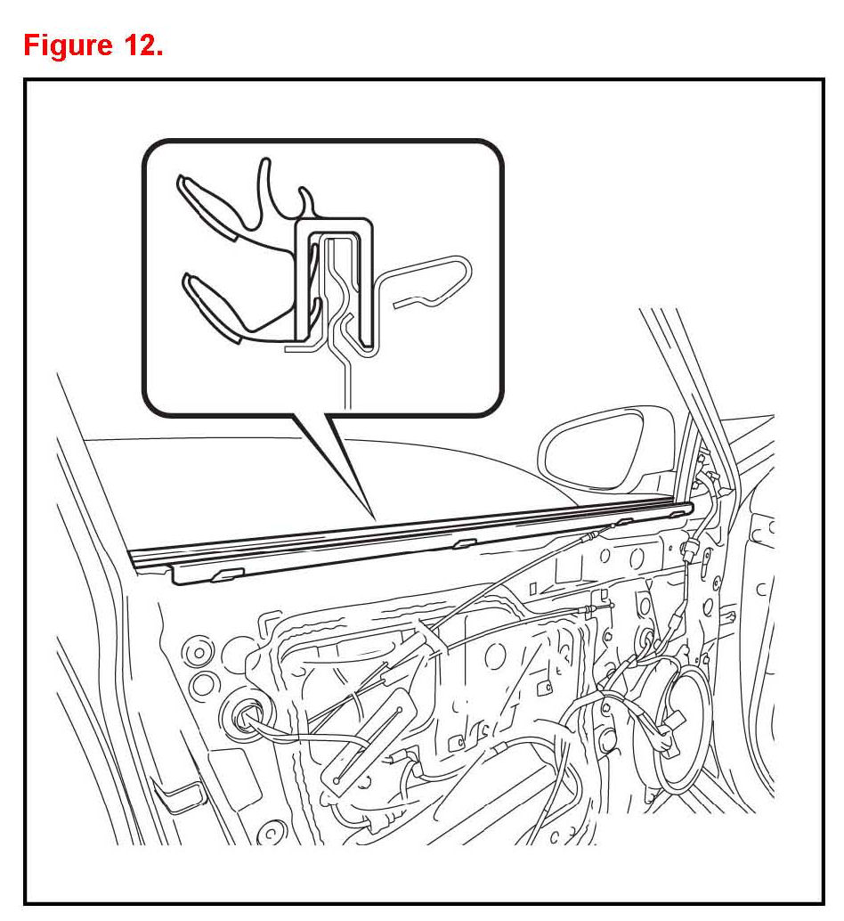 1. Install the NEW front door inner glass weatherstrip.