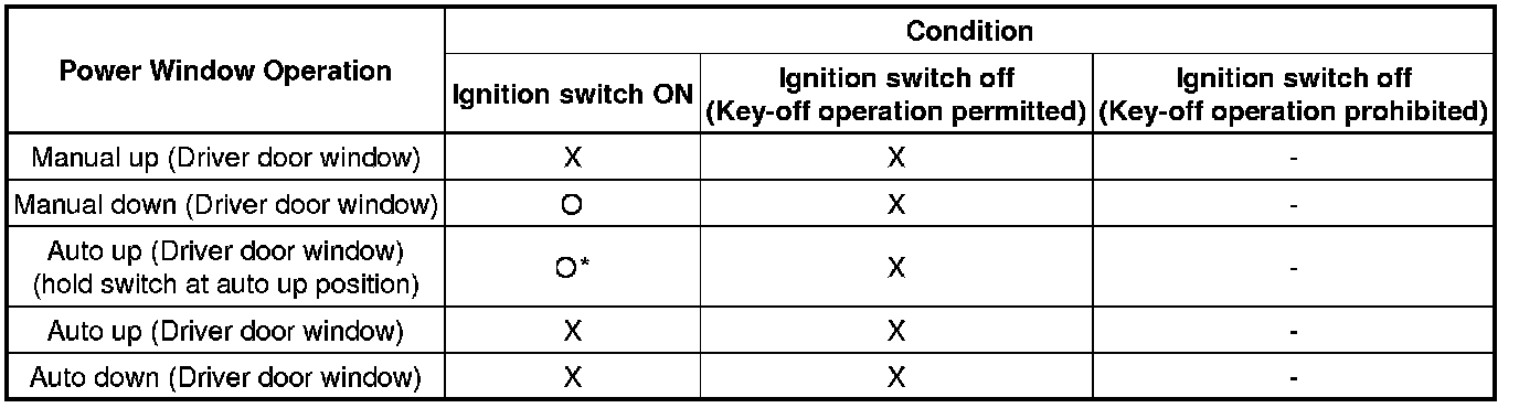 * *: Jam protection can operate and window reverses upon reaching the fully closed position.