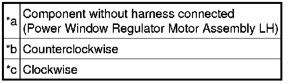 * If the result is not as specified, replace the power window regulator motor assembly LH.