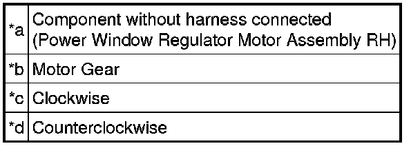 If the result is not as specified, replace the power window regulator motor assembly RH.