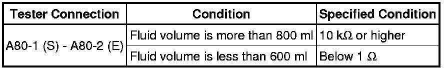 If the result is not as specified, replace the level warning switch assembly.