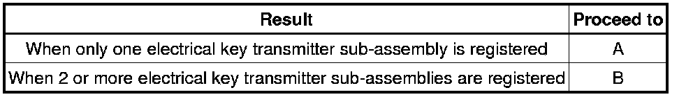 Example: When there are 3 registered electrical key transmitter sub-assemblies (A, B and C).