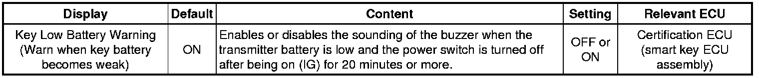 THEFT DETERRENT / KEYLESS ENTRY: SMART KEY SYSTEM (for Start Function): CUSTOMIZE PARAMETERS