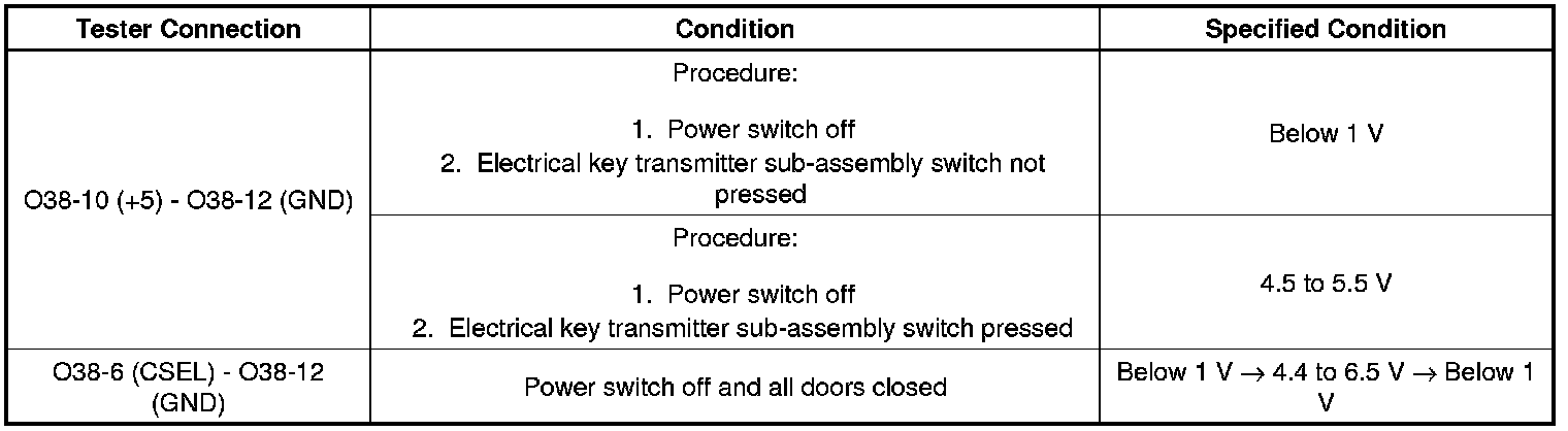 (a) Bring the electrical key transmitter sub-assembly that was checked first near the door control receiver and select the failed channel (the channel in which the buzzer did not sound) to recheck the key diagnostic mode Operation Check.