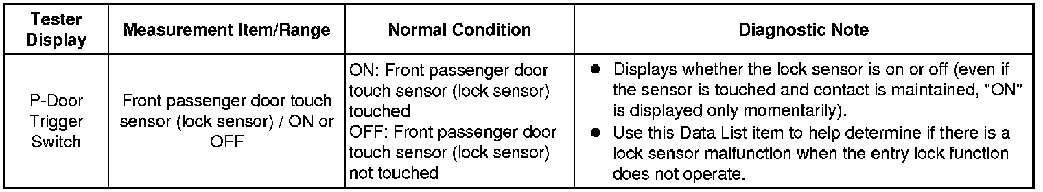 - Front Passenger Side Door Entry Lock Function does not Operate