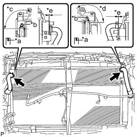 * Make sure to align the alignment marks of the hoses with the ribs of the radiator assembly.