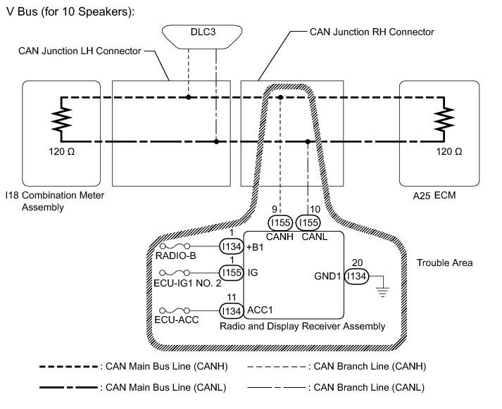 NG -- REPAIR OR REPLACE CAN BRANCH LINE OR CONNECTOR (RADIO AND DISPLAY RECEIVER ASSEMBLY)