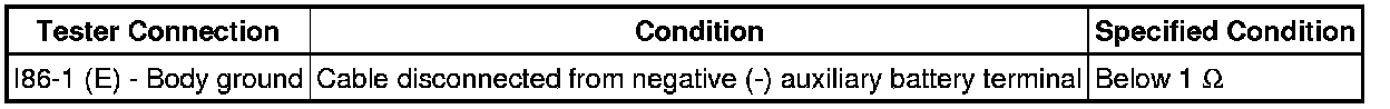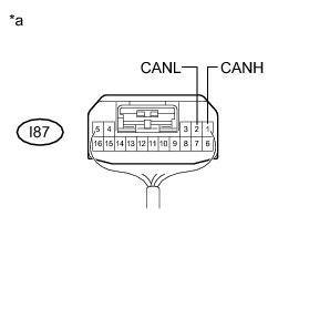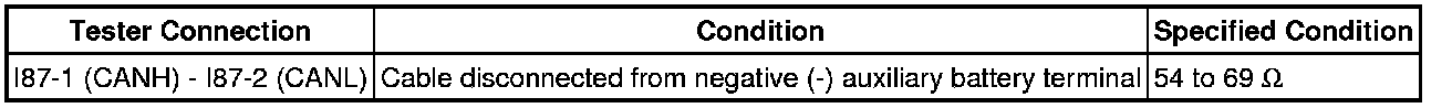 * Before measuring the resistance of the CAN bus, turn the power switch off and leave the vehicle for 1 minute or more without operating the key, switches or opening or closing the doors. After that, disconnect the cable from the negative (-) auxiliary battery terminal and leave the vehicle for 1 minute or more before measuring the resistance.