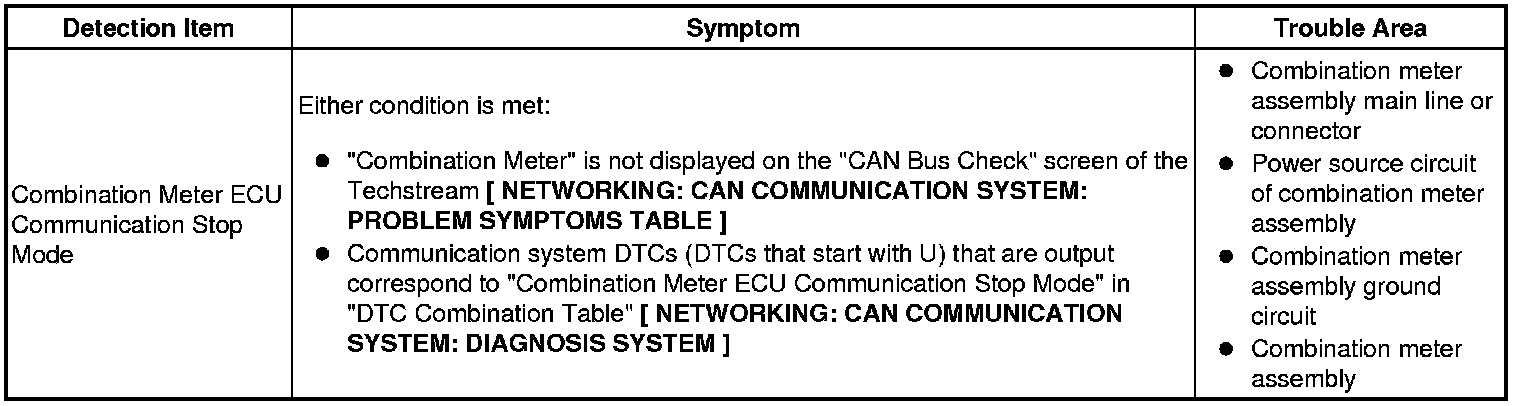 NETWORKING: CAN COMMUNICATION SYSTEM: Combination Meter ECU Communication Stop Mode