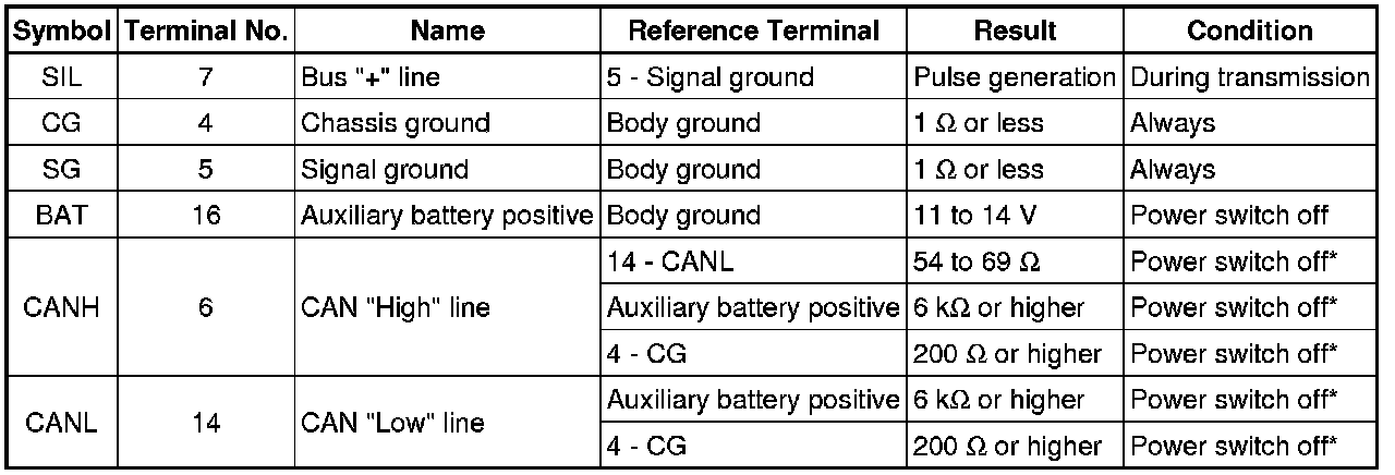 *: Before measuring the resistance, leave the vehicle as is for at least 1 minute and do not operate the power switch, any other switches or the doors.