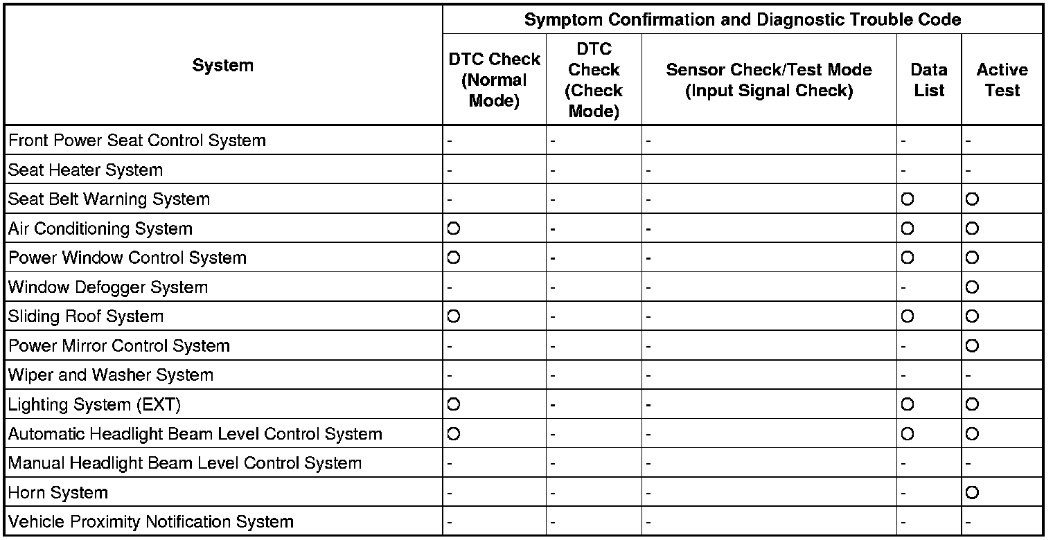 By using these functions, the problem areas can be narrowed down and troubleshooting can be more effective. Diagnostic functions are incorporated in the following systems of this vehicle.