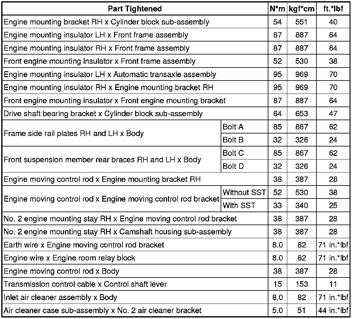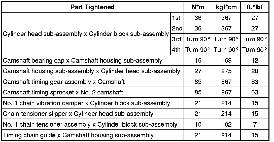 SPECIFICATIONS: 2AR-FXE ENGINE MECHANICAL: TORQUE SPECIFICATIONS