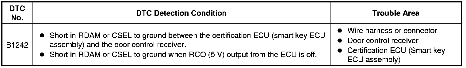 DOOR LOCK: WIRELESS DOOR LOCK CONTROL SYSTEM (w/ Smart Key System): B1242: Wireless Door Lock Tuner Circuit Malfunction