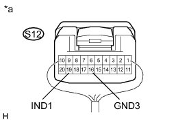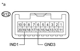(b) Connect the positive lead of a voltmeter to terminal S12-19 (IND1), and the negative lead to terminal S12-16 (GND3).