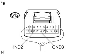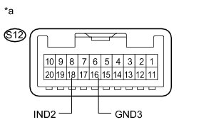 (b) Connect the positive lead of a voltmeter to terminal S12-18 (IND2), and the negative lead to terminal S12-16 (GND3).