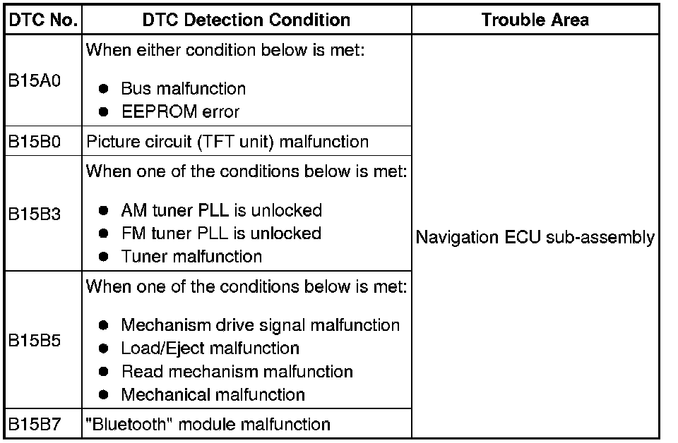 These DTCs are stored when a malfunction occurs in the navigation ECU sub-assembly.