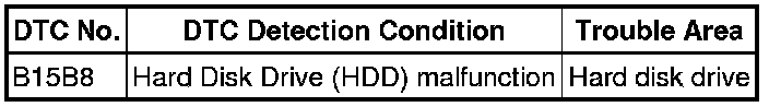 AUDIO / VIDEO: AUDIO AND VISUAL SYSTEM (for Radio and Display Type with Intuitive Parking Assist System): B15B8: Hard disk Malfunction