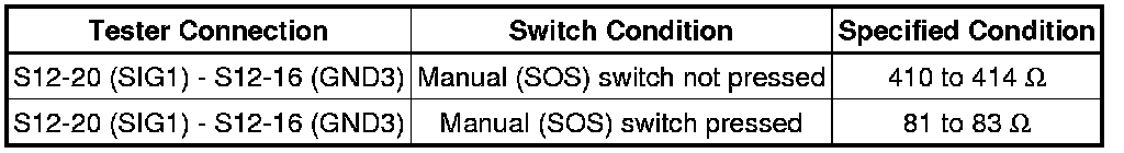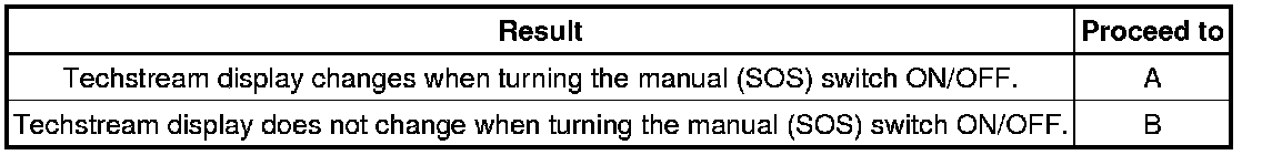 (f) Check that the manual (SOS) switch condition observed on the Techstream changes according to manual (SOS) switch operation.