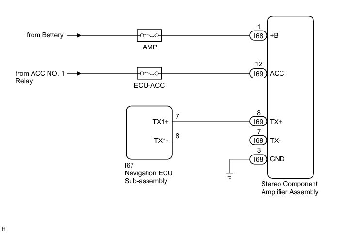 NG -- CHECK HARNESS AND CONNECTOR (STEREO COMPONENT AMPLIFIER ASSEMBLY - BATTERY, BODY GROUND)